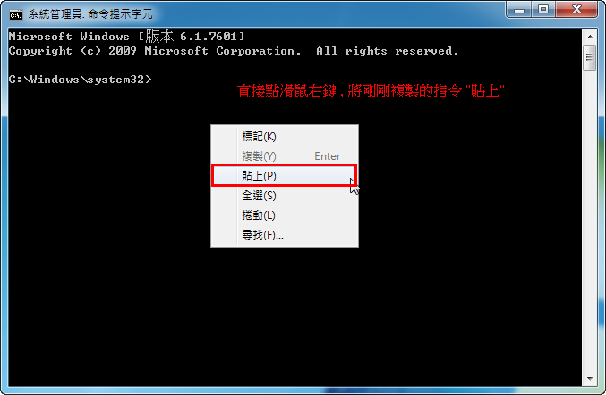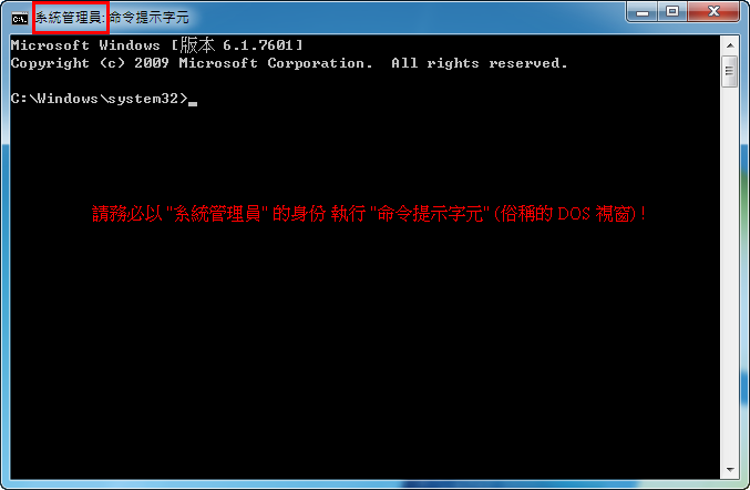 请务必以 "系统管理员身份" 开启 "命令提示字元" (俗称的 DOS 视窗) !