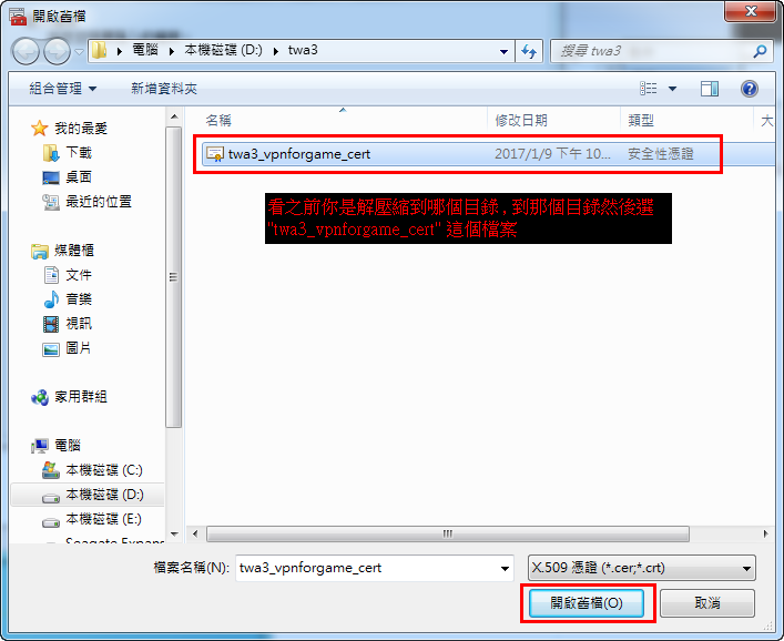 (1) 请先下载凭证档,下载后请解压缩到任何一个你喜欢的目录 !